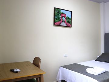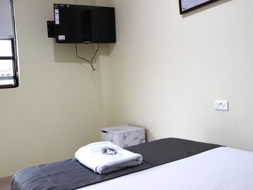(1,90m*1,40m), baño privado, televisor, ventilador, servicio de parqueadero.