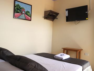 (1,90m*1,20m), baño privado, televisor, aire acondicionado, servicio de parqueadero.